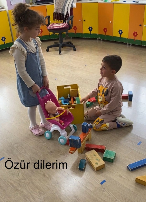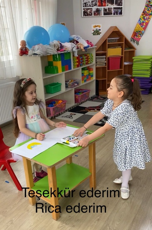 Etkinlikler kapsamında çocuklara teşekkür etme, selamlaşma, özür dileme, yardımseverlik ve paylaşma gibi temel görgü kuralları oyunlar aracılığıyla aktarıldı. “Tebrik ederim” ve “Eline sağlık” gibi ifadelerin içtenlikle kullanıldığı anlar sınıfta sıcak ve sevgi dolu bir atmosfer oluşturdu. Etkinlik süresince öğretmenleri rehberliğinde empati, saygı ve nazik iletişim konularına odaklanıldı.