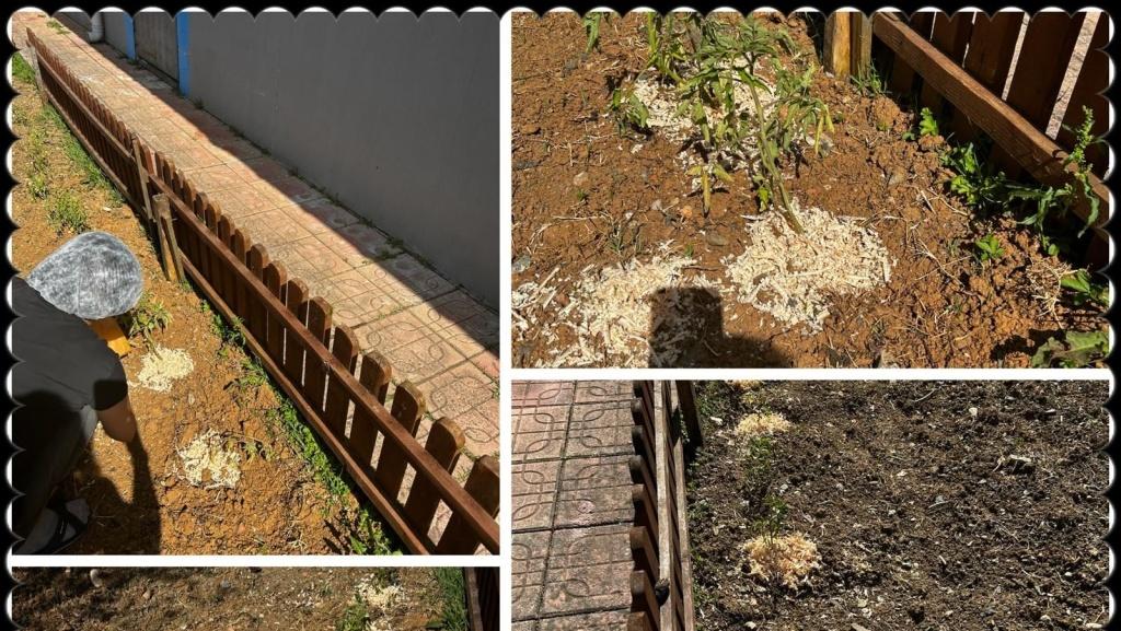 Bahçemizdeki meyve ve sebzeleri korumak adına malçlama çalışması yapıyoruz.